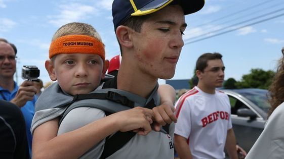 cerebral palsy by walking 40 miles with his younger brother strapped to